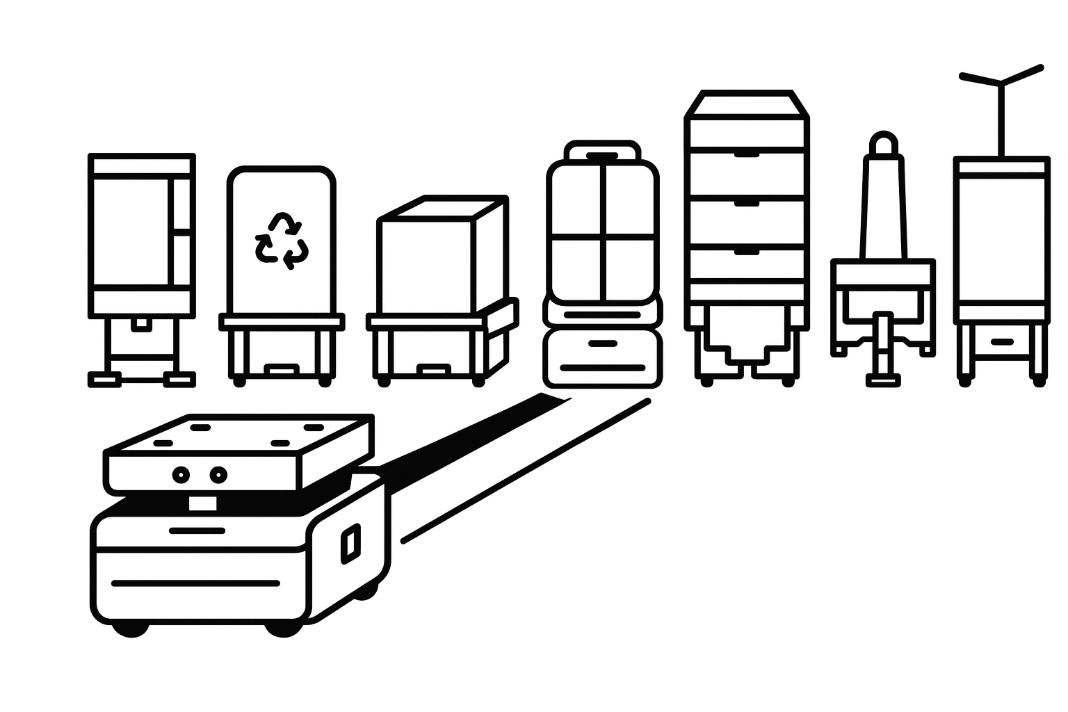 配達・清掃・案内など多彩な業務を1台でこなせる多機能ロボットです。上部ユニットを交換することで、用途に応じた機能切り替えが可能です。